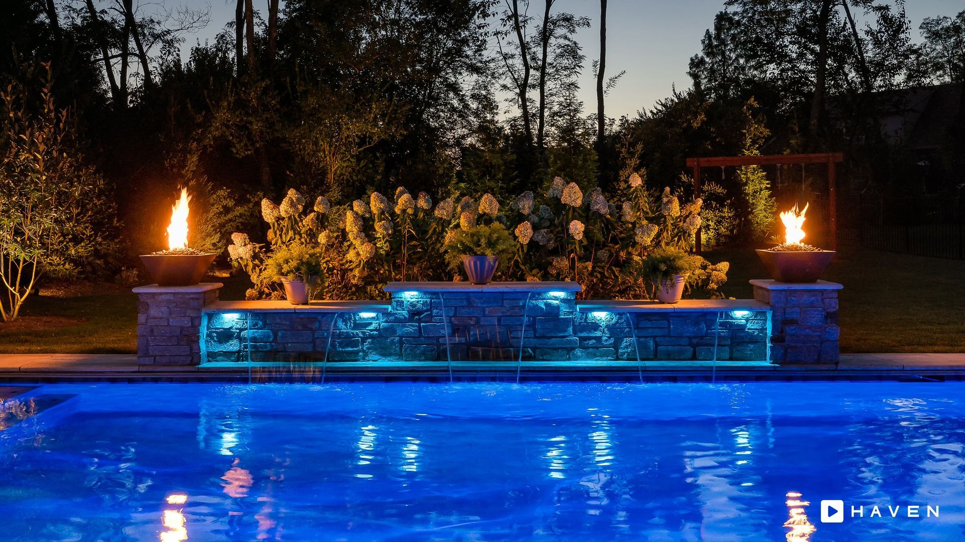 Use the Haven app to set events by time or by sunset/sunrise. The system auto‑adjusts for changing daylight and Daylight Saving Time. You can also create zones and scenes (front yard, backyard, roofline) and schedule each separately. We’ll pre‑program your first set of scenes during install.